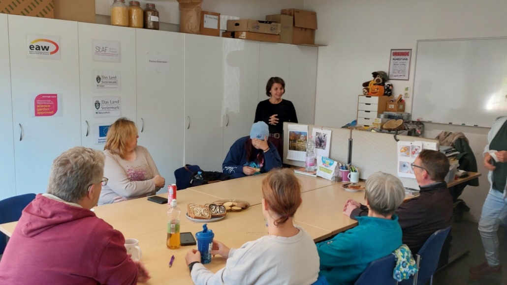 Die große Streuobstwiese mitten in der Stadt ist für den innerstädtischen Grünbereich eine „Naturoase“ und bildet mit dem Stadtgarten und den umliegenden Hausgärten entlang der Lassnitz einen Biotopverbund. Durch die Mithilfe bei der Ernte und der Verwertung von alten Obstsorten profitieren unsere Transitarbeitskräfte durch „praktisches lernen“ und können dieses Wissen zuhause weitergeben und im Falle eines eigenen Gartens gleich selbst anwenden.